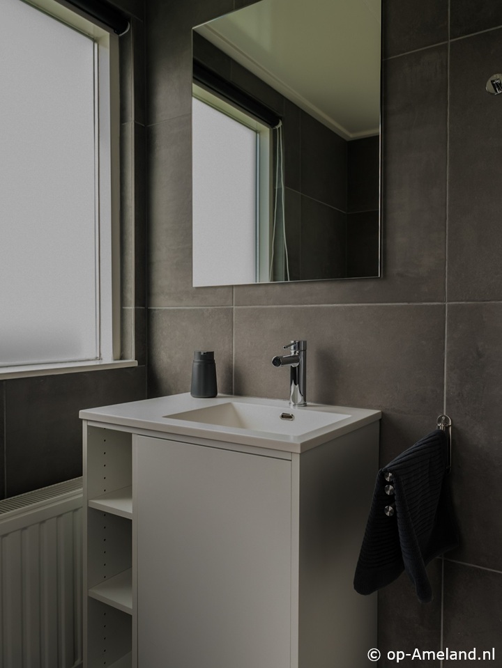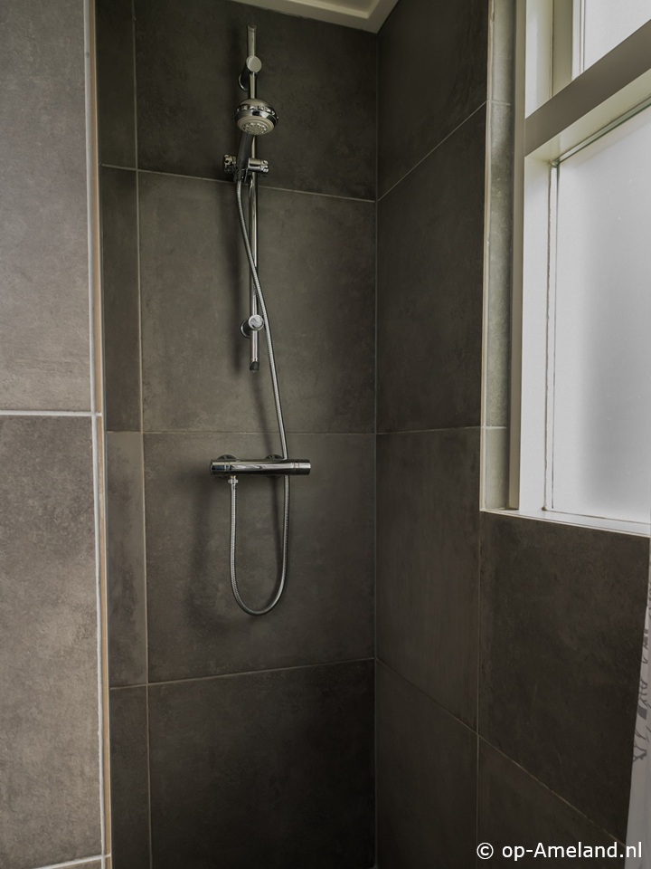 Badezimmer mit Dusche. Separate Toilette.